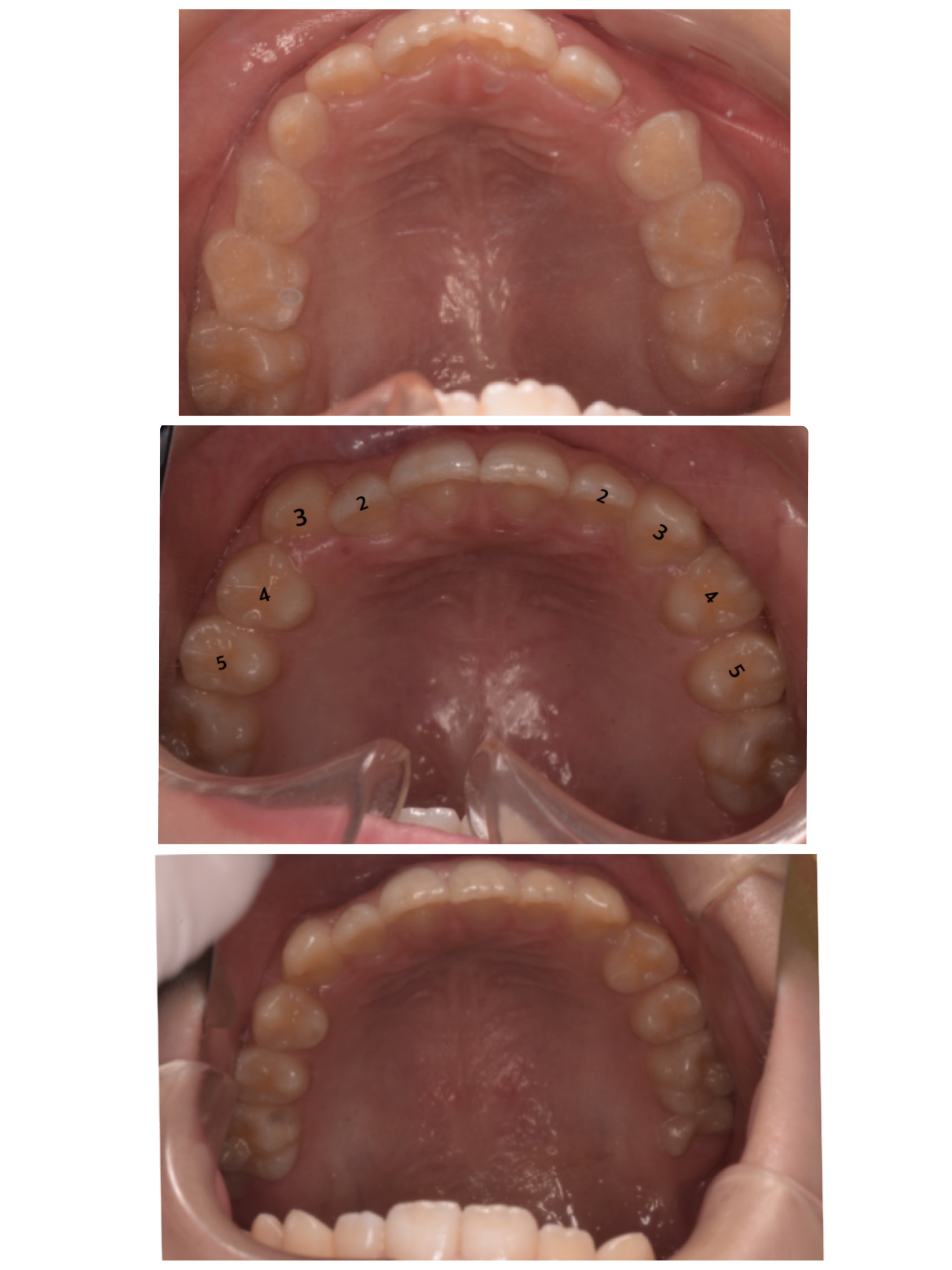 お口の中のお写真も見ていくとまだ下の歯は重なりがありますが、少しずつその重なりも少なくなって来ています。